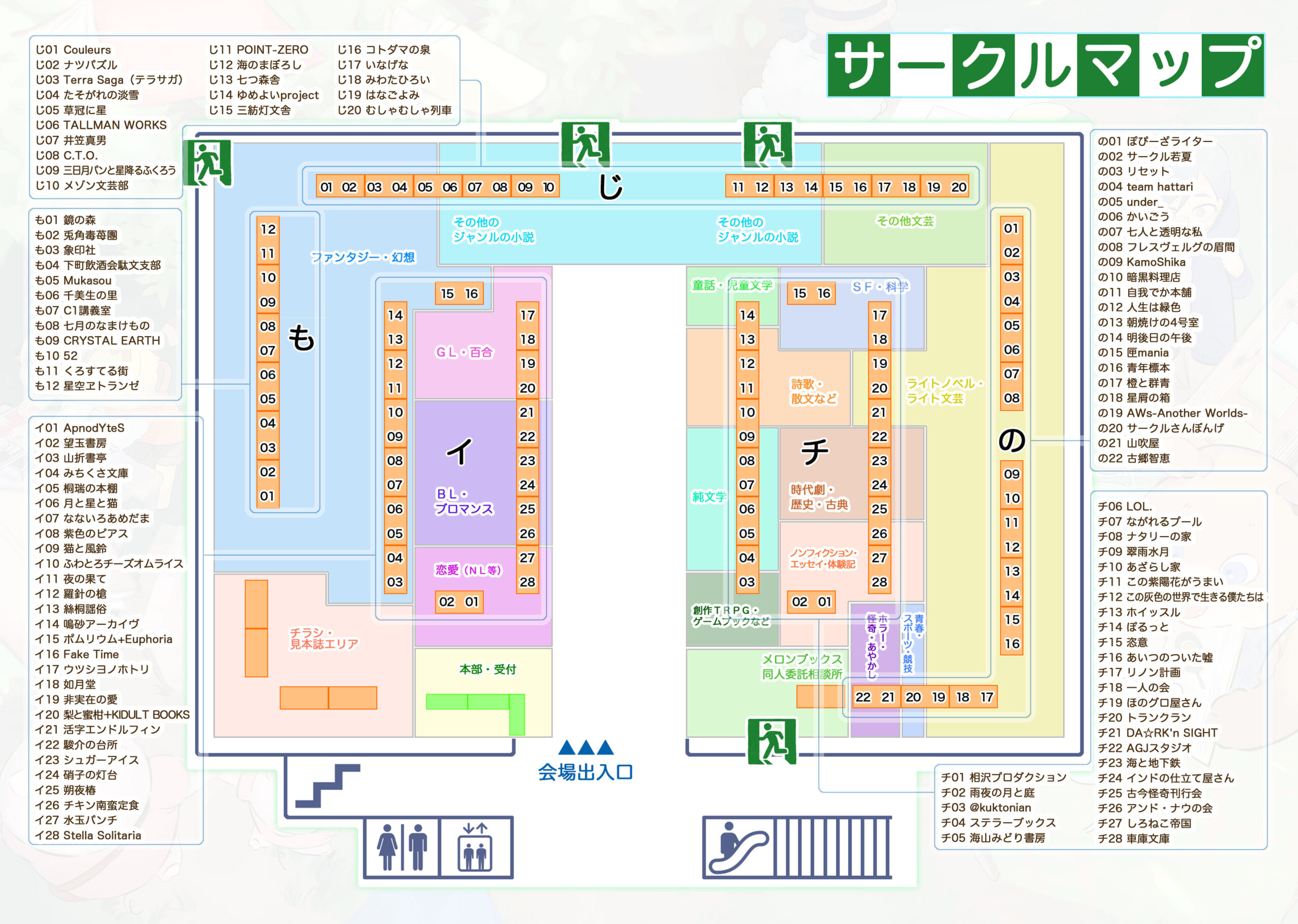 イベント会場配布のサークルカタログはこちら!(解像度を落としています) ・PDF版検索が可能なGoogleスプレッドシート版はこちら! ・Googleスプレッドシート版会場マップはこちら!(マップ画像データはサークルPR等にご自由にお使い下さい)XBlueskyHatenaCopy